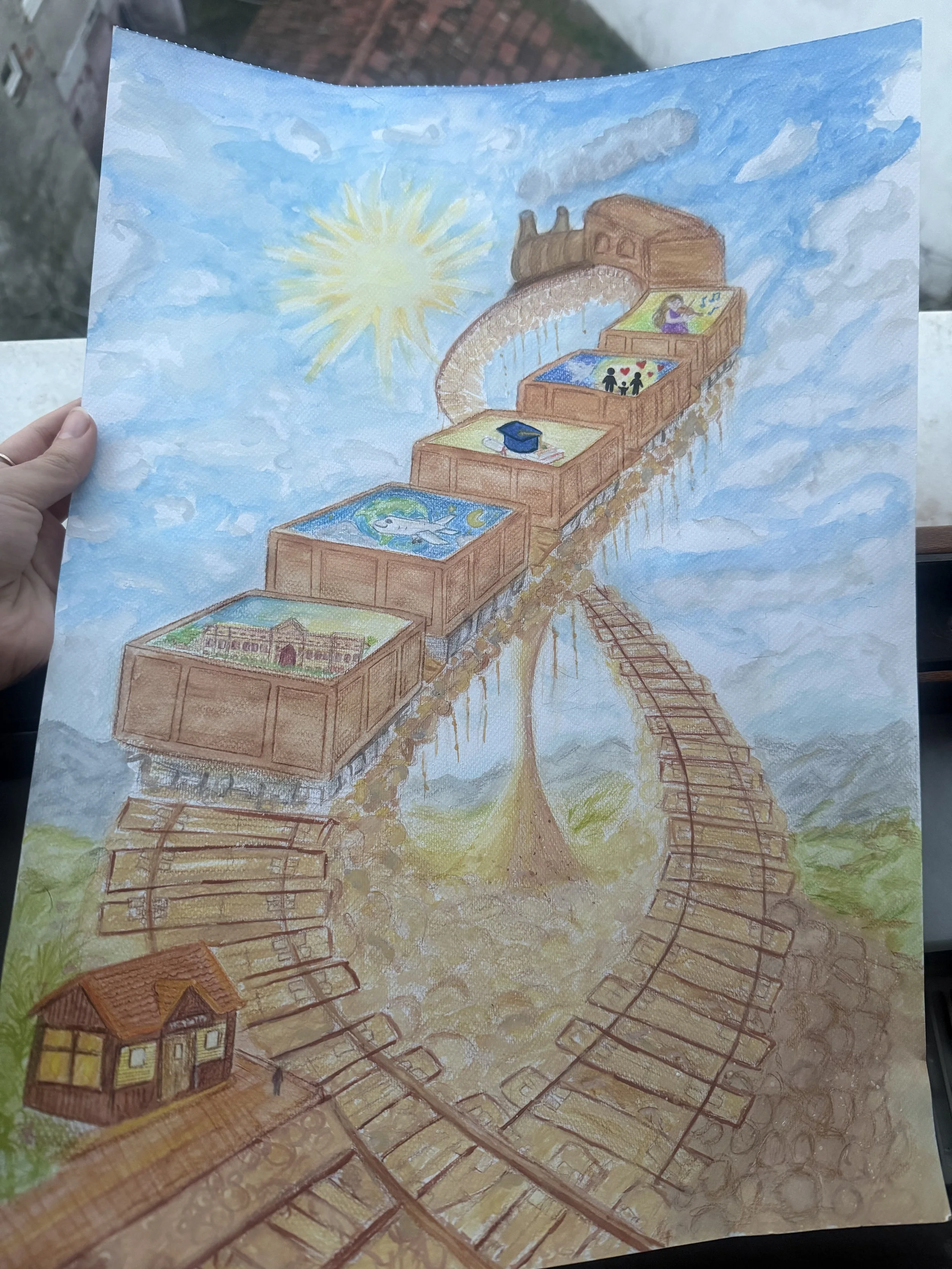 “My concept is a train stretching towards the sky, carrying my dreams in its carriages. The tracks will be hourglass-shaped, because I want my dreams to come true as time passes.”