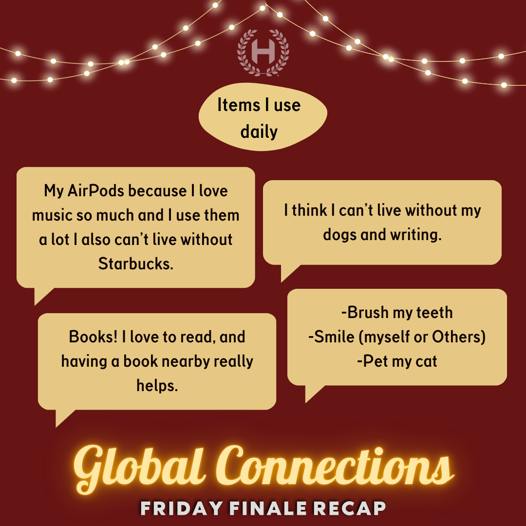 We closed Global Connections Week with a day to celebrate what we have shared and learned. We took the opportunity to share what keeps us going every day, which naturally led to a need to put together a music playlist for the week.