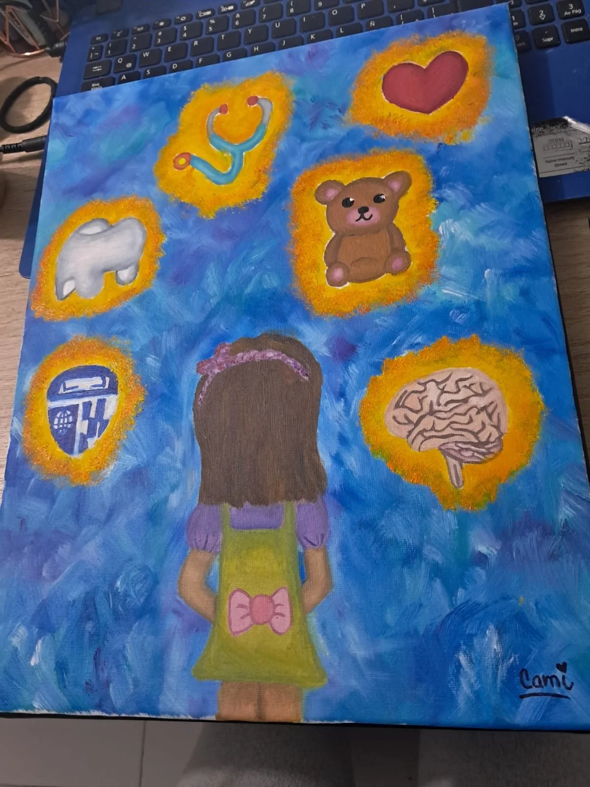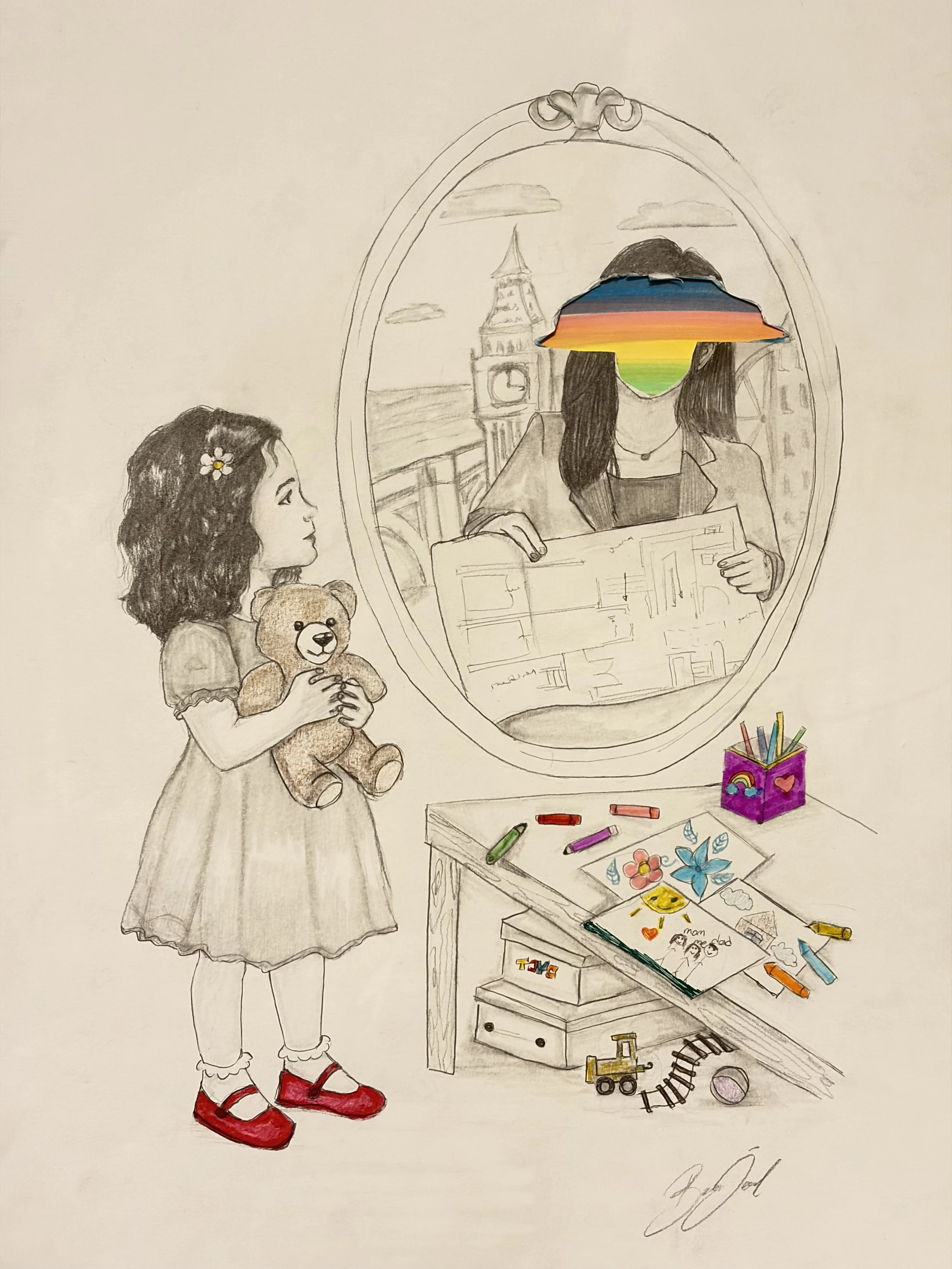“ …This artwork is a message to my future self, reminding me of my strength, my passion for medicine, and my determination to become a pediatrician without giving up.”