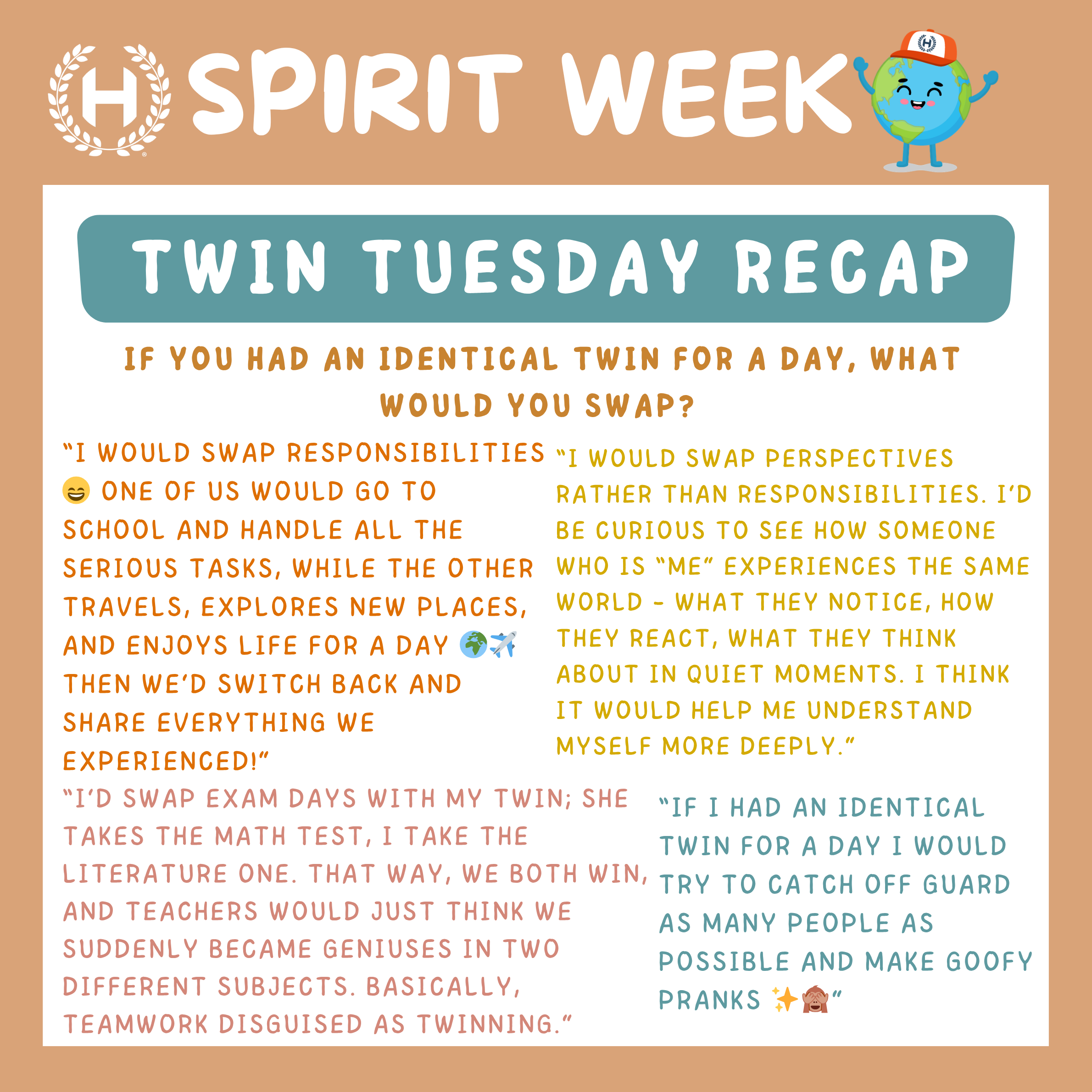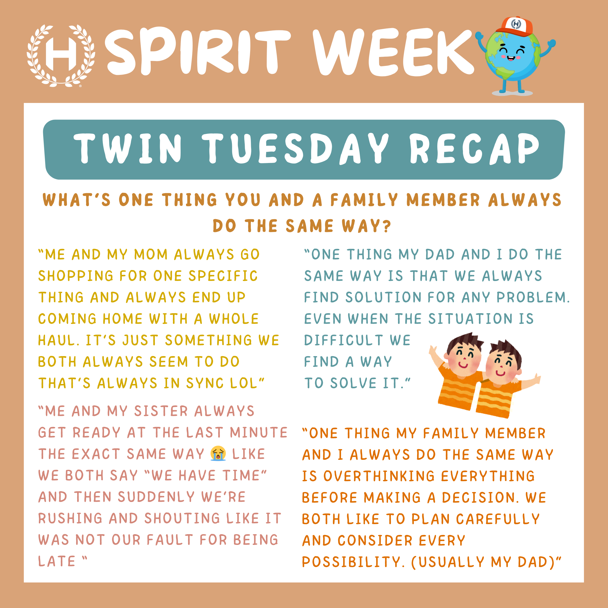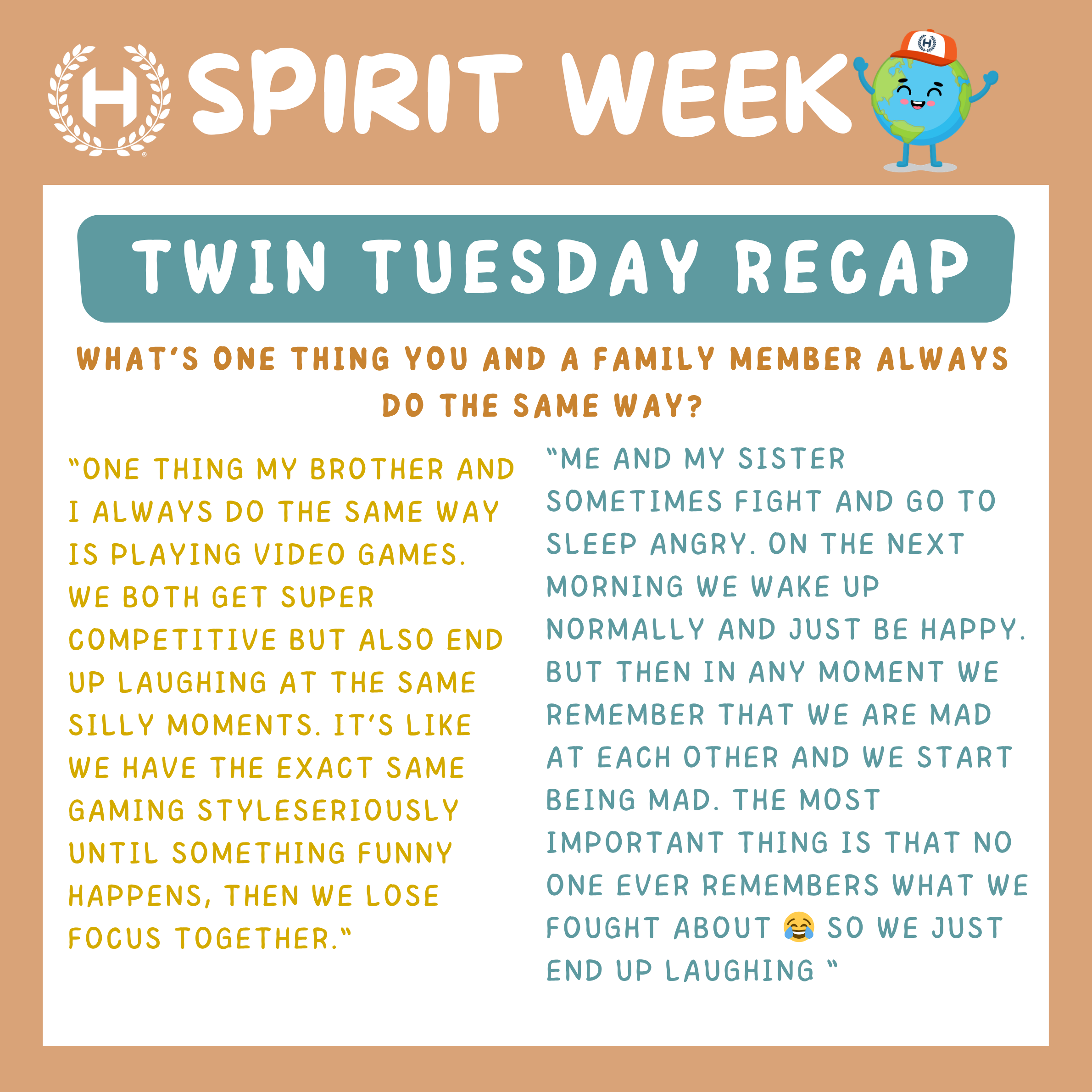 Thank you for sharing your stories and making Twin Tuesday such a meaningful part of Spirit Week. More fun coming soon!